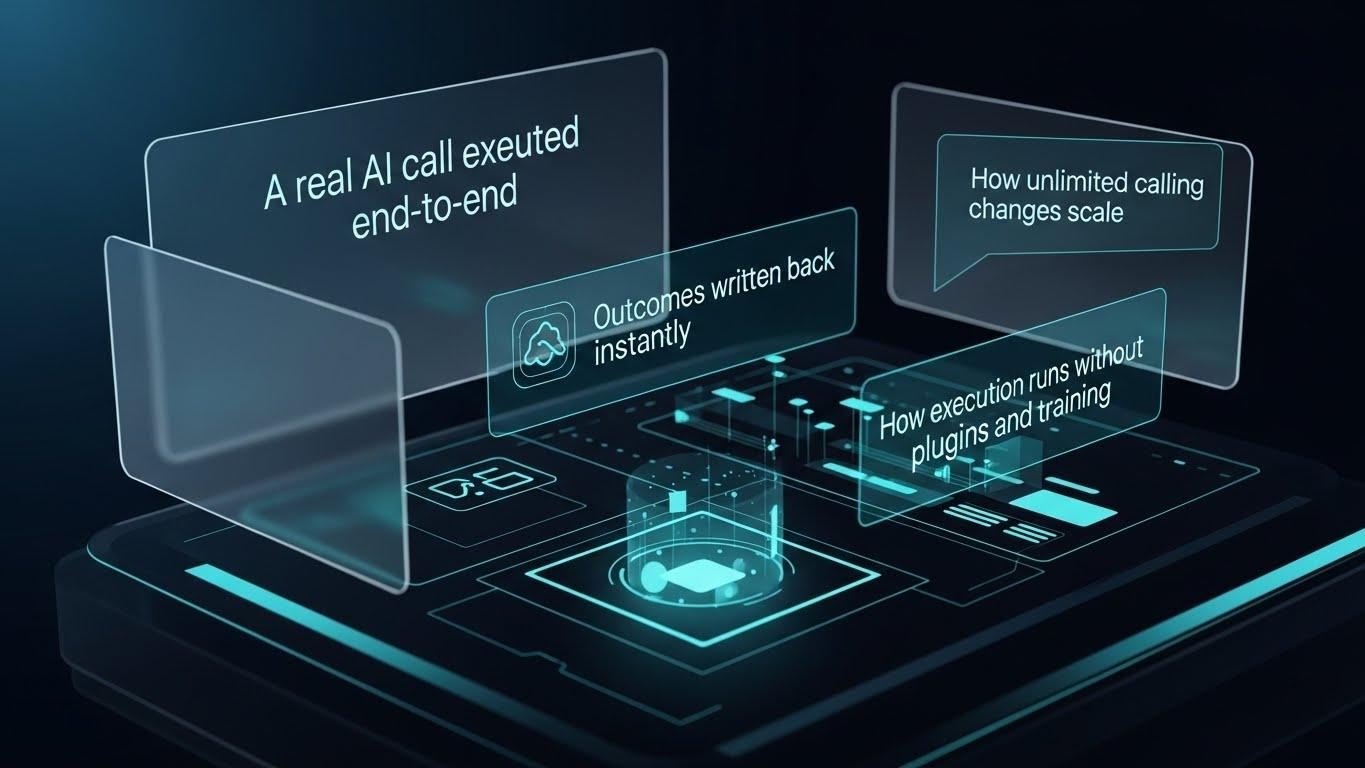 It turns CRM data into real conversations — automatically — and writes clean, structured outcomes back without changing how your CRM works.