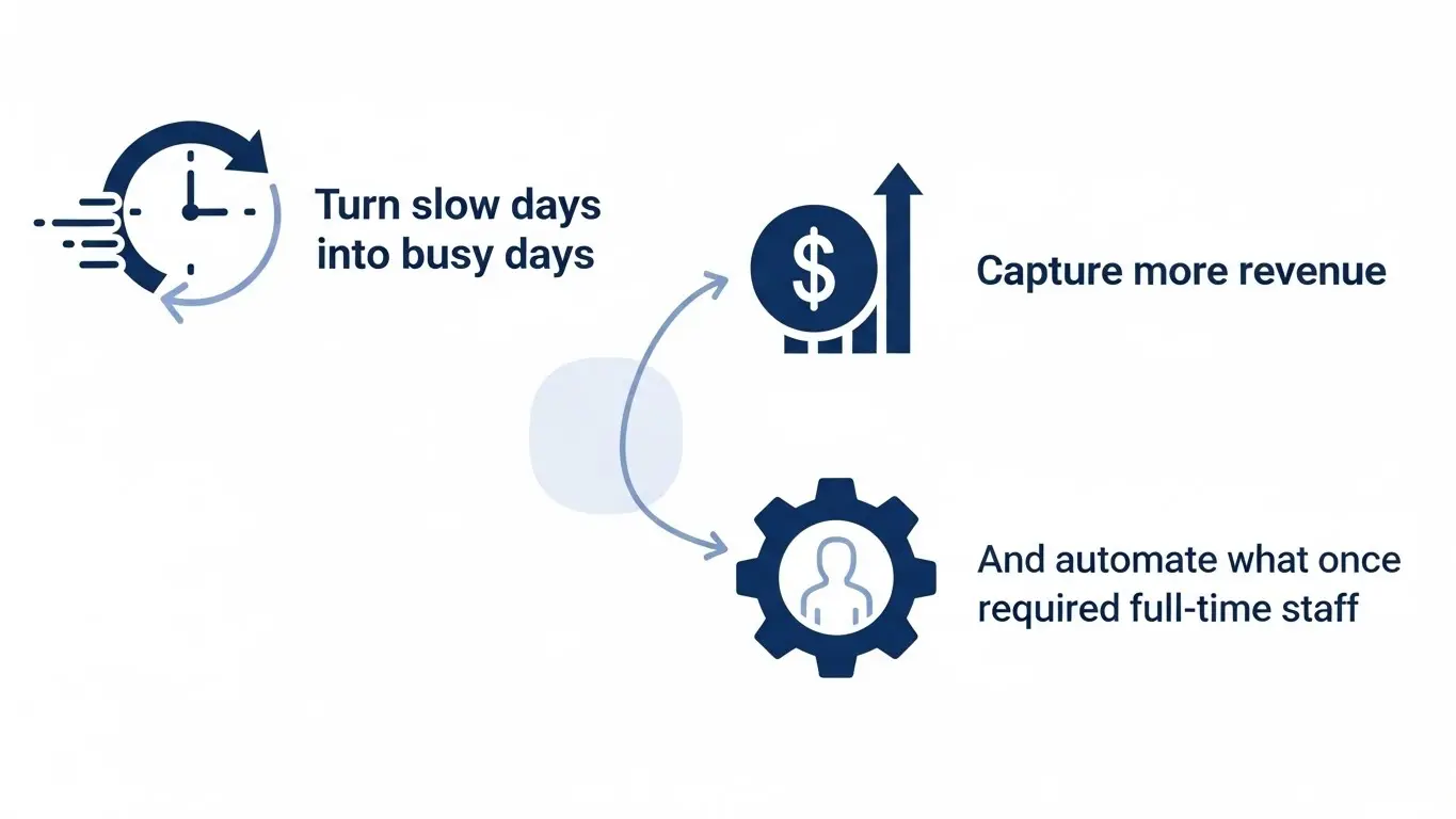 Turn slow days into busy days. Capture more revenue. And automate what once required full-time staff.
